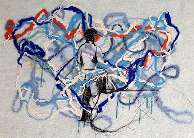 * Self-portrait 5-year-old 'Self-portrait' embroidered by hand with black thread without any certain direction, they come and go at random. The intertwined threads build a perfect tangle, shaping the face of an innocent and naive girl at a time of great change in her life. (Size: 25x35.5x1cm)